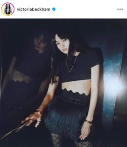 ซึ่งเธอได้โพสต์ถึง “ลิซ่า” ในฐานะ “มิวส์” (Muse) หรือสาวผู้เป็นแรงบันดาลใจของแบรนด์ Victoria Beckham ซึ่งเป็นแบรนด์เสื้อผ้าซึ่งโด่งดังระดับโลกของเธอ โดยในโพสต์นี้เป็นภาพที่ “ลิซ่า” สวมชุดเสื้อ-กระโปรงสีดำเรียบหรูโชว์เอว สวมลุคที่ 37 จากคอลเลกชั่นฤดูใบไม้ผลิ/ซัมเมอร์ 2023 ของแบรนด์ ถ่ายแบบกับ @MadameFigaroFr. ค่ะ”