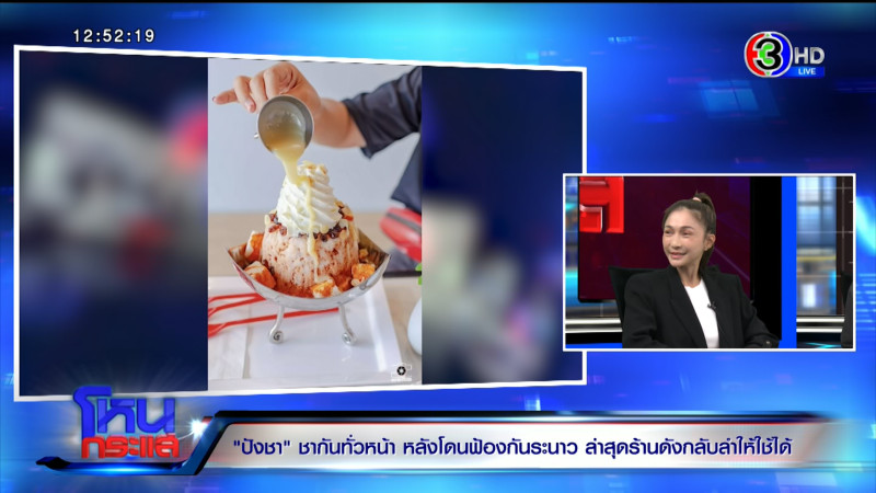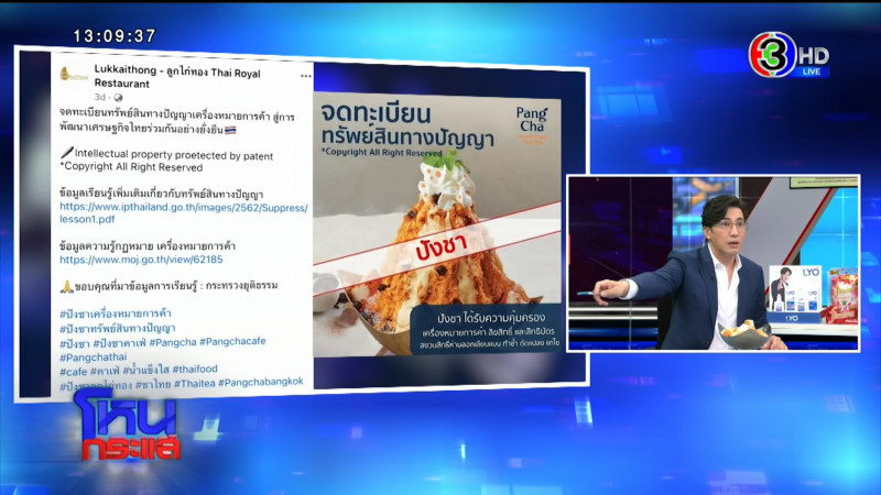 รายการโหนกระแส ออกอากาศวันที่ 1 ก.ย. 66 “หนุ่ม กรรชัย กำเนิดพลอย” ดำเนินรายการ ผลิตในนามบริษัท ดีคืนดีวัน จำกัด ออกอากาศทุกวันจันทร์-ศุกร์ เวลา 12.35 น. ทางช่อง 3 กดเลข 33 ได้สัมภาษณ์ แก้ม เจ้าของร้านลูกไก่ทอง , นิว เจ้าของร้านปังชา จ.เชียงราย, แตงกวา เจ้าของร้านทางช้างเผือก จ.สงขลา, นุ๊ก – มายด์ เจ้าของร้านและหุ้นส่วนตั้งใจชง ตัวแทนแก้ม ลูกไก่ทอง , อรรณพ บุญสว่าง ทนายความคุณแก้ม เจ้าของร้านลูกไก่ทอง , ทักษอร สมบูรณ์ทรัพย์ ผู้เชี่ยวชาญเฉพาะด้านกฎหมายกรมทรัพย์สินทางปัญญา