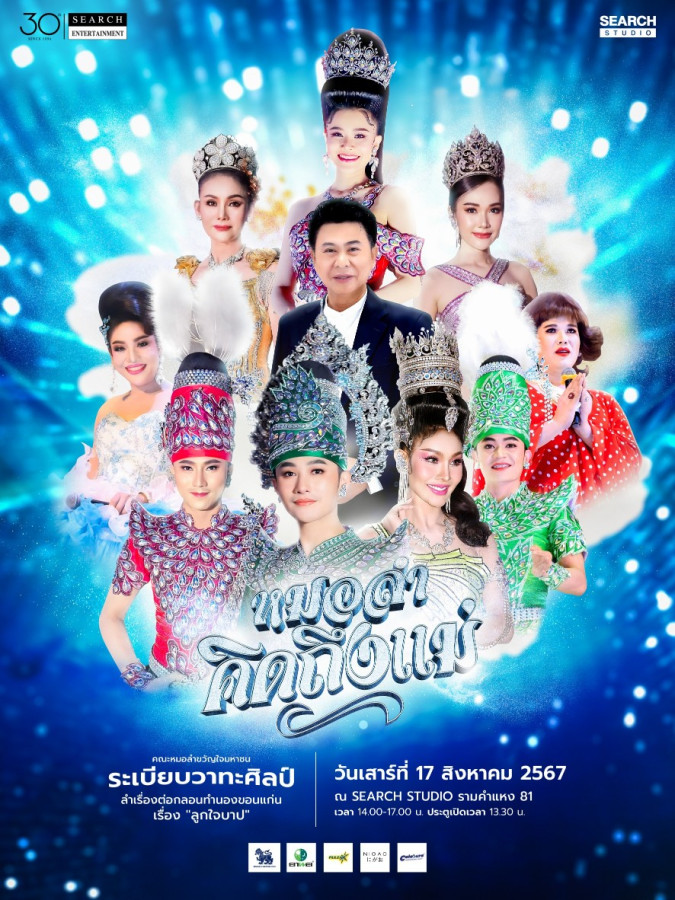 ช่วงปิดฤดูกาลหมอลำแบบนี้ ใครที่คิดถึง “ระเบียบวาทะศิลป์” บอกเลยว่าห้ามพลาดงานนี้!!! บริษัท เซิร์ช เอ็นเตอร์เทนเม้นท์ จํากัด ร่วมกับ สภาสังคมสงเคราะห์แห่งประเทศไทย ในพระบรมราชูปถัมภ์ พร้อมด้วย บริษัท สิงห์ คอร์เปอเรชั่น จำกัด, นิกาโอะครีมเปลี่ยนสีผม, เอินเวย์นวัตกรรมสมุนไพรจีน, น้ำมันเครื่องเพาว์ซ่า PZR และ ผลิตภัณฑ์เสริมอาหาร โคลอชัวร์ ขอเชิญชวนคู่แม่-ลูก มารวมพลังบอกรักแม่ไปด้วยกัน ใน “หมอลำคิดถึงแม่” กับหมอลำขวัญใจมหาชน “ระเบียบวาทะศิลป์” ลำเรื่องต่อกลอนทำนองขอนแก่น เรื่องลูกใจบาป วันเสาร์ที่ 17 สิงหาคม 2567 ณ SEARCH STUDIO รามคำแหง 81