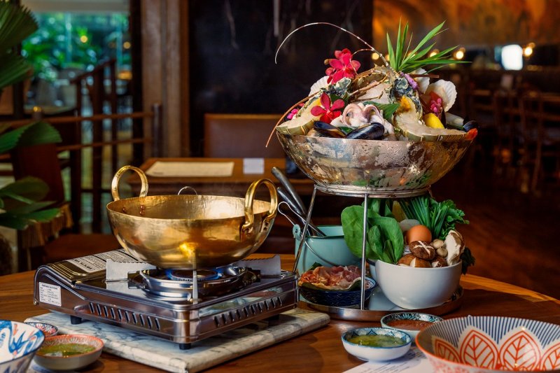 สำหรับเซ็ตเนื้อประกอบไปด้วย เนื้อริบอาย เนื่อเซอร์ลอย ลูกชิ้นเนื้อและหมู เนื้อไก่ สันคอหมู ผักสดต่างๆ เห็ด ไข่ไก่ และน้ำซุปไก่รสชาติกลมกล่อม สำหรับเซ็ตทะเล อิ่มอร่อยไปกับกุ้งล๊อบสเตอร์ภูเก็ต กุ้งแม่น้ำ หอยเชล หอยแมลงภู่ ปลาหหมึกสด ปลากระพง ผัดสดต่างๆ ไข่ไก่ และน้ำซุปมีให้เลือกระหว่างซุปปลาหรือซุปต้มยำ